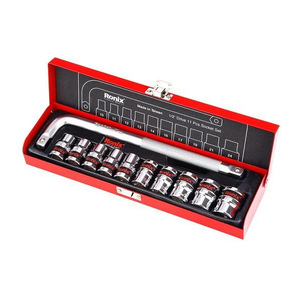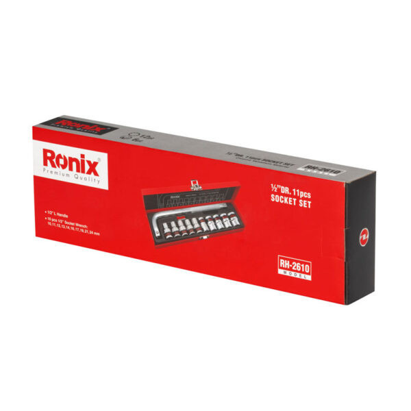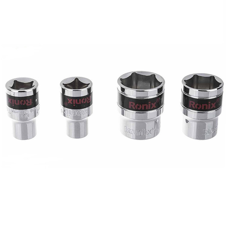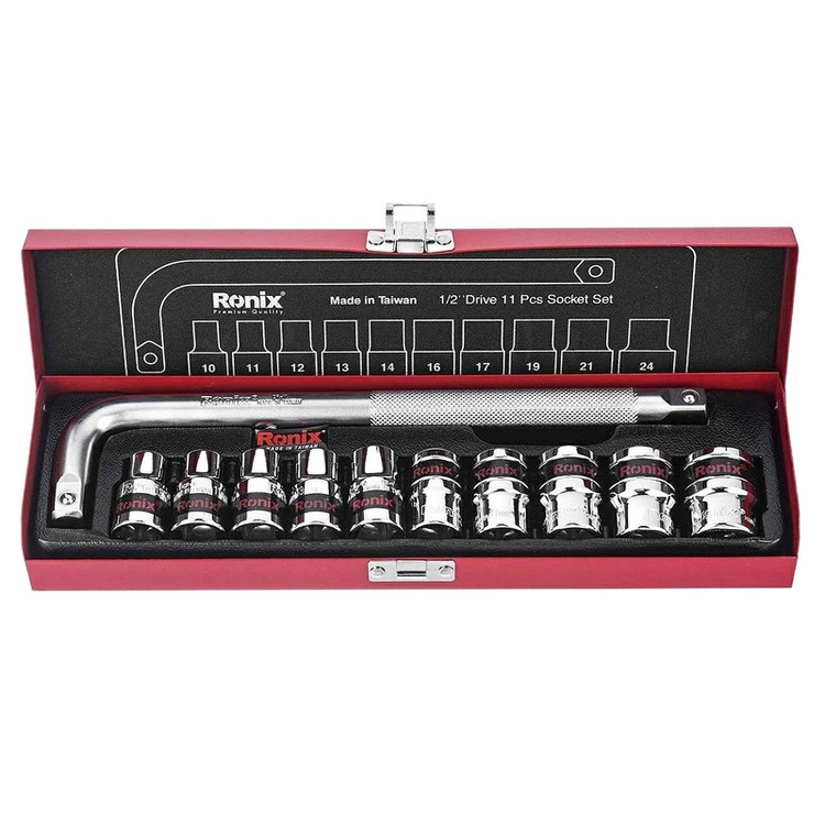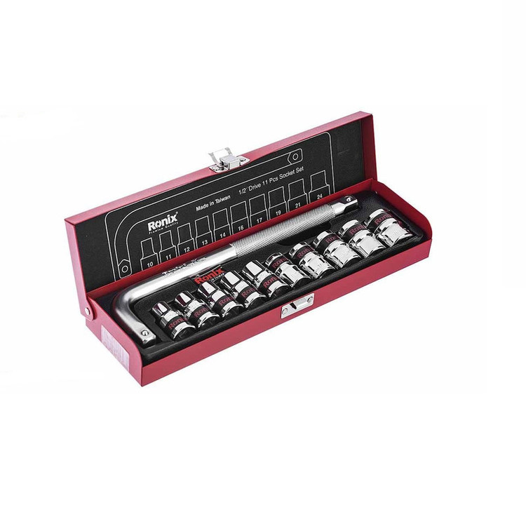 روکش آینه ای جعبه تمام فلزی مستحکم شامل بکس های 2/1 اینچی با سایز های 10، 11، 12، 13، 14، 16، 18، 19، 21 و 24 میلی متر دسته کمکی L شکل