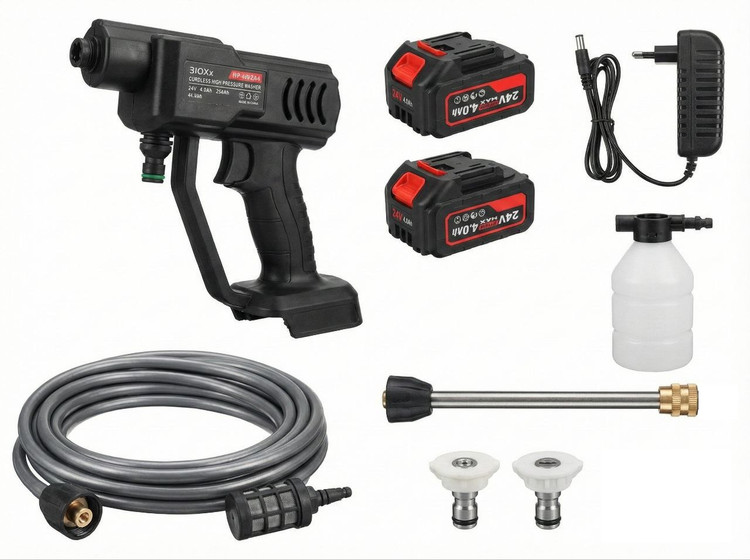 کارواش شارژی قدرتمند ۲۴ ولت DIOXX مدل HP-WG24A | همراه با دو باتری ۴ آمپر و پک کامل لوازم